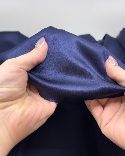 Perfectly puckered with a radiant sheen, our Ripple Satin features a unique textured weave that creates a plisse-like look. This midweight woven offers a pinch of stretch along the cross-grain, giving it a crinkled look that becomes more pronounced after washing. This charming fabric sews up beautifully into simple statement dresses & skirts, jumpsuits, and swishy elastic-waist pants.