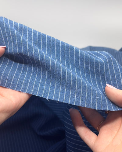 Lightweight and breathable, this timeless cotton lyocell shirting features a fine pinstripe design that’s sure to be a wardrobe staple. With a linen-like look and feel, this classic blend boasts a relaxed drape that will hold pleats, gathers, and tucks like a dream. We’re loving this woven for classic button ups and flowy dresses & skirts.