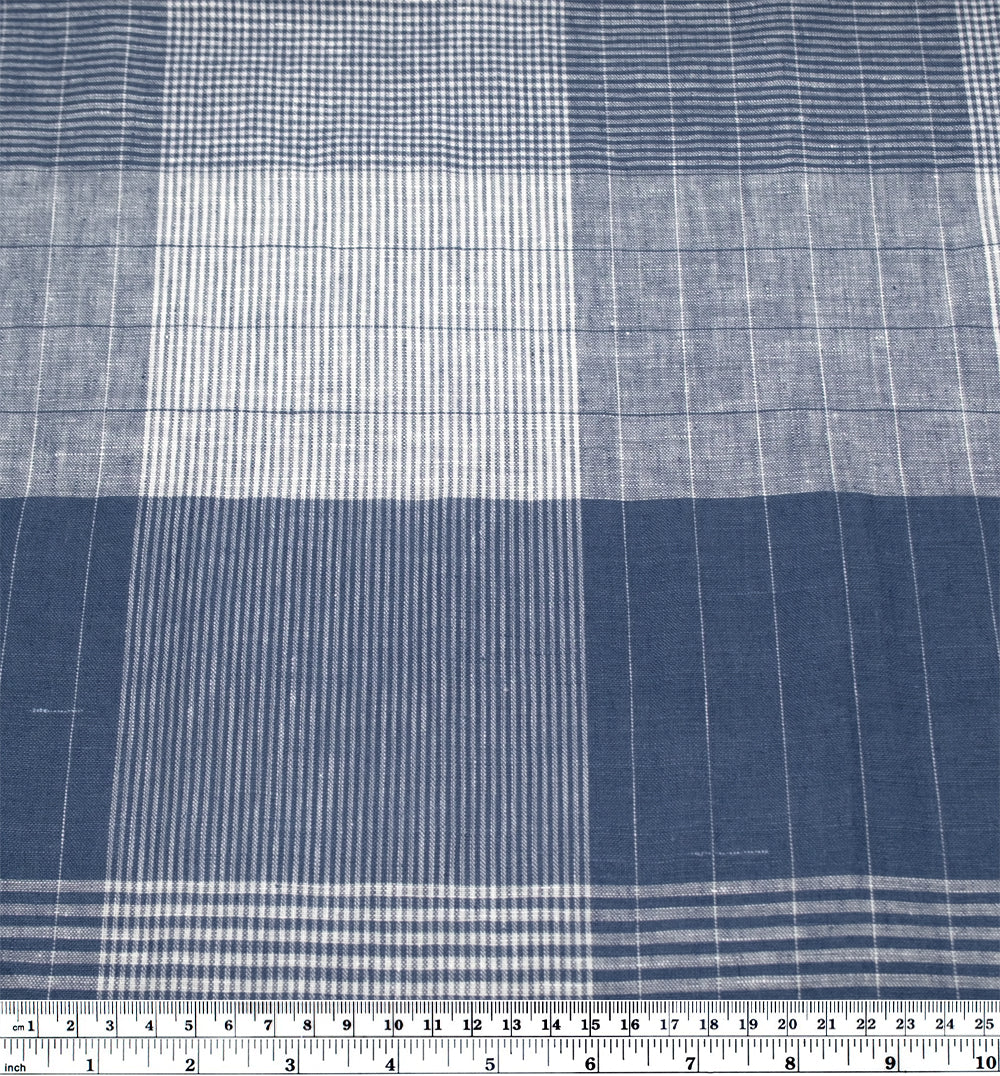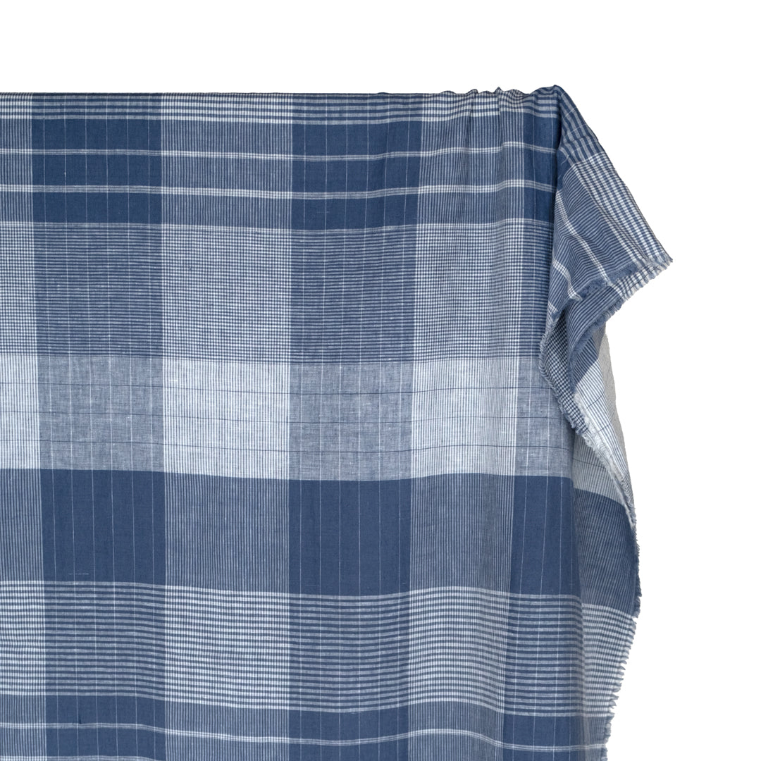 Plaid Yarn Dyed Linen Cotton - Pacific/White