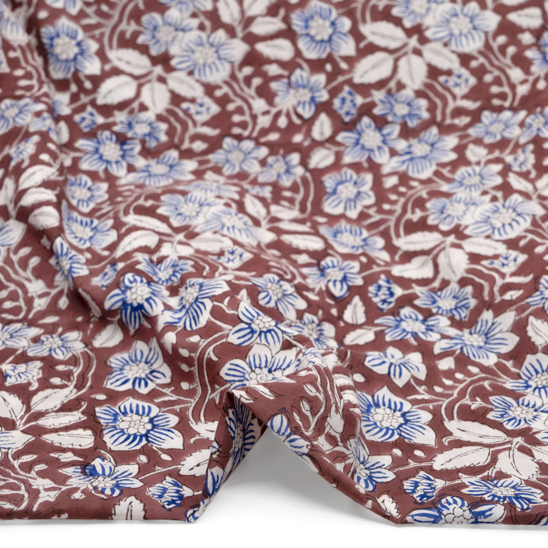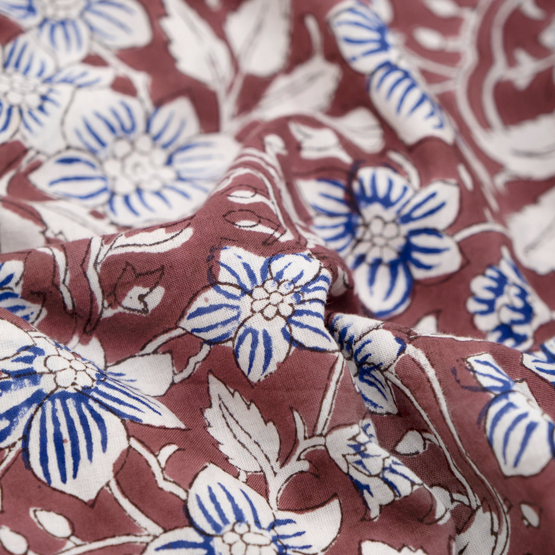 Bloom Block Printed Organic Cotton Batiste - Cream/Maroon/Taffy