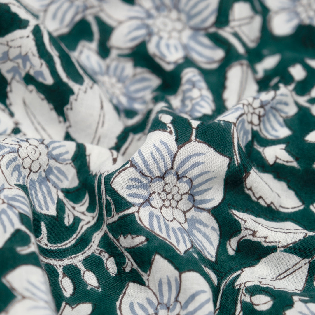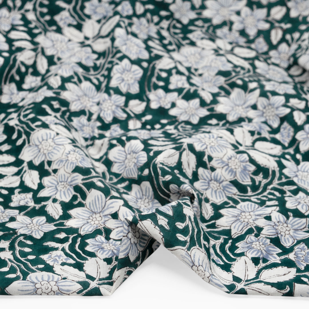 Bloom Block Printed Organic Cotton Batiste - Lapis/Waterfall/Pine