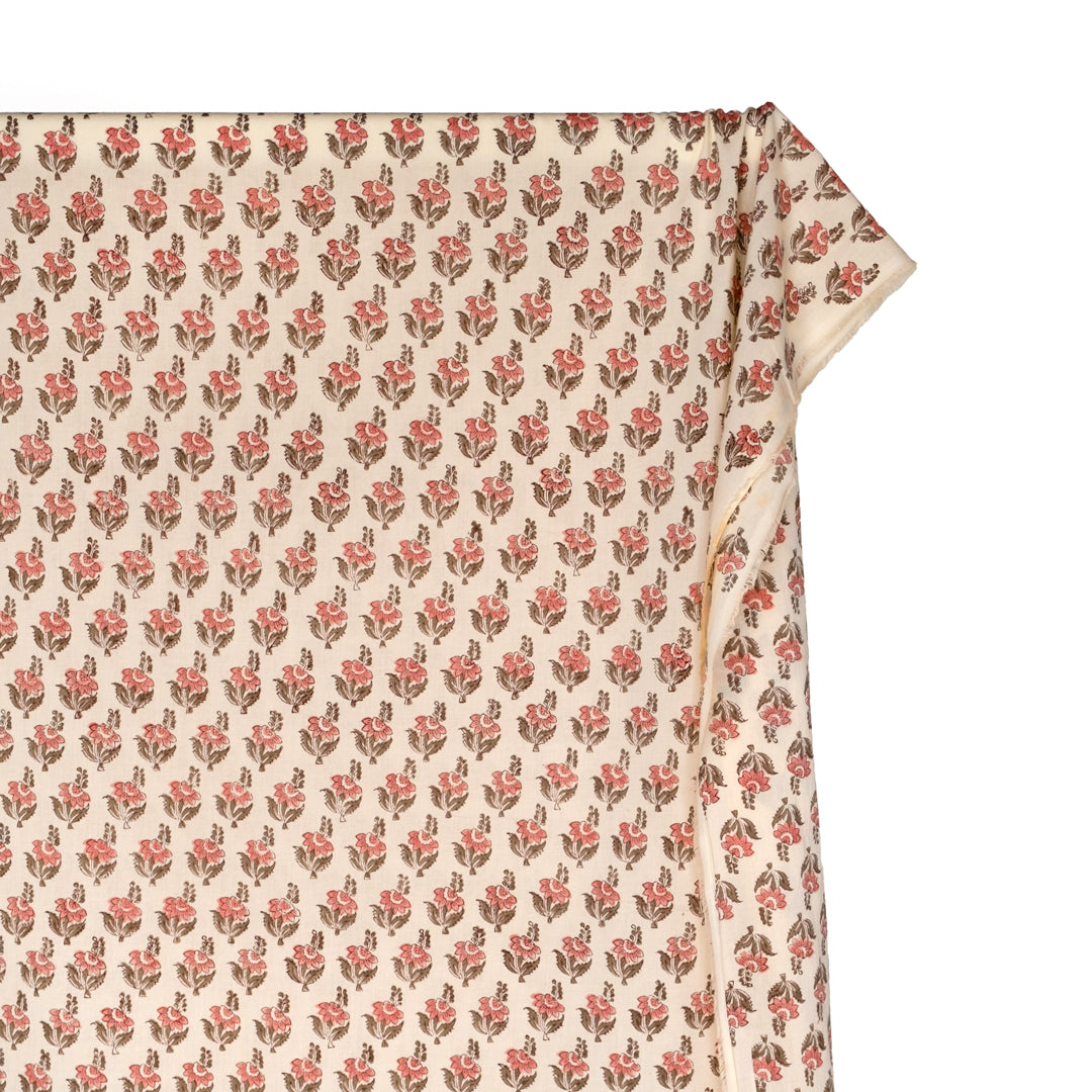 Ultra-lightweight with a crisp hand, this block printed organic cotton batiste is comfortable to wear and a dream to sew. Ideal for quilted makes, voluminous tops & dresses, and classic button-ups, this cotton batiste is super versatile and easy to work with. The stunning floral motif was printed by hand in Sanganer, Jaipur, India using traditional block printing techniques and azo-free dyes that prevent harmful runoff in the production process. They will fade beautifully into a soft vintage look with wash and wear.