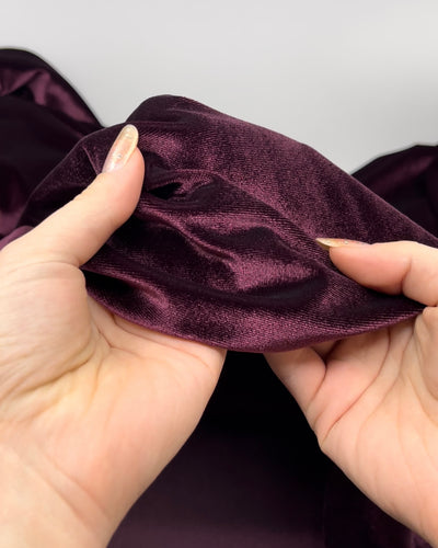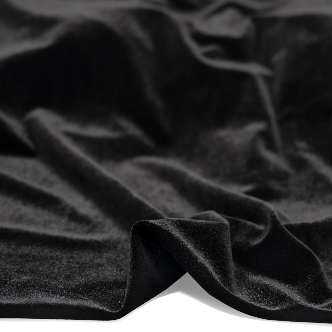 Give all of your favourite basics a glam refresh with this sumptuous velvet! This knit stretch velvet boasts a rich, lustrous finish, a smooth pile, and a beautifully soft hand. With a slinky fluid drape and comfortable 4-way stretch, this midweight knit is perfect for a range of projects from dazzling dresses & jumpsuits to luxe loungewear sets.