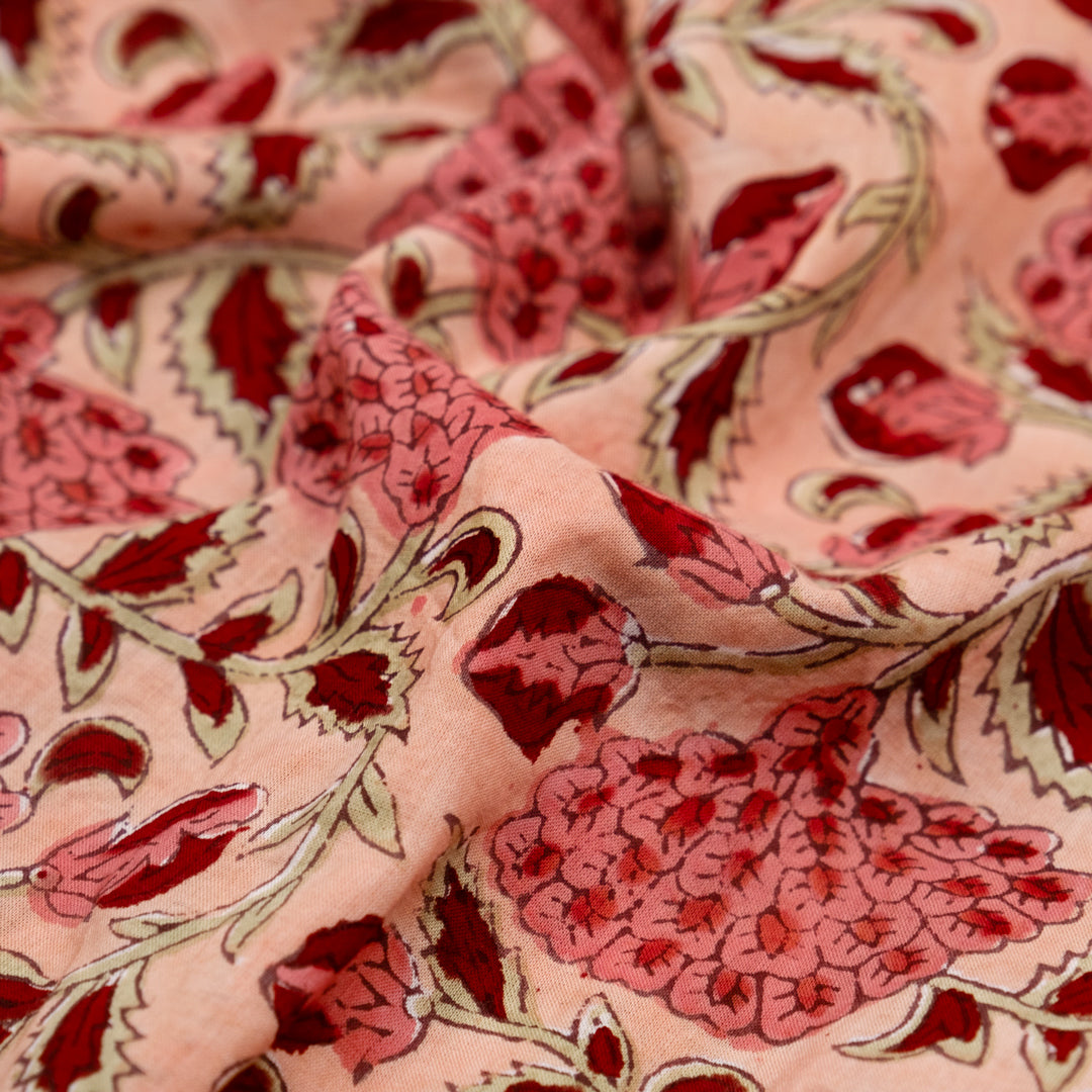 Bloom Block Printed Organic Cotton Batiste - Papaya/Burgundy