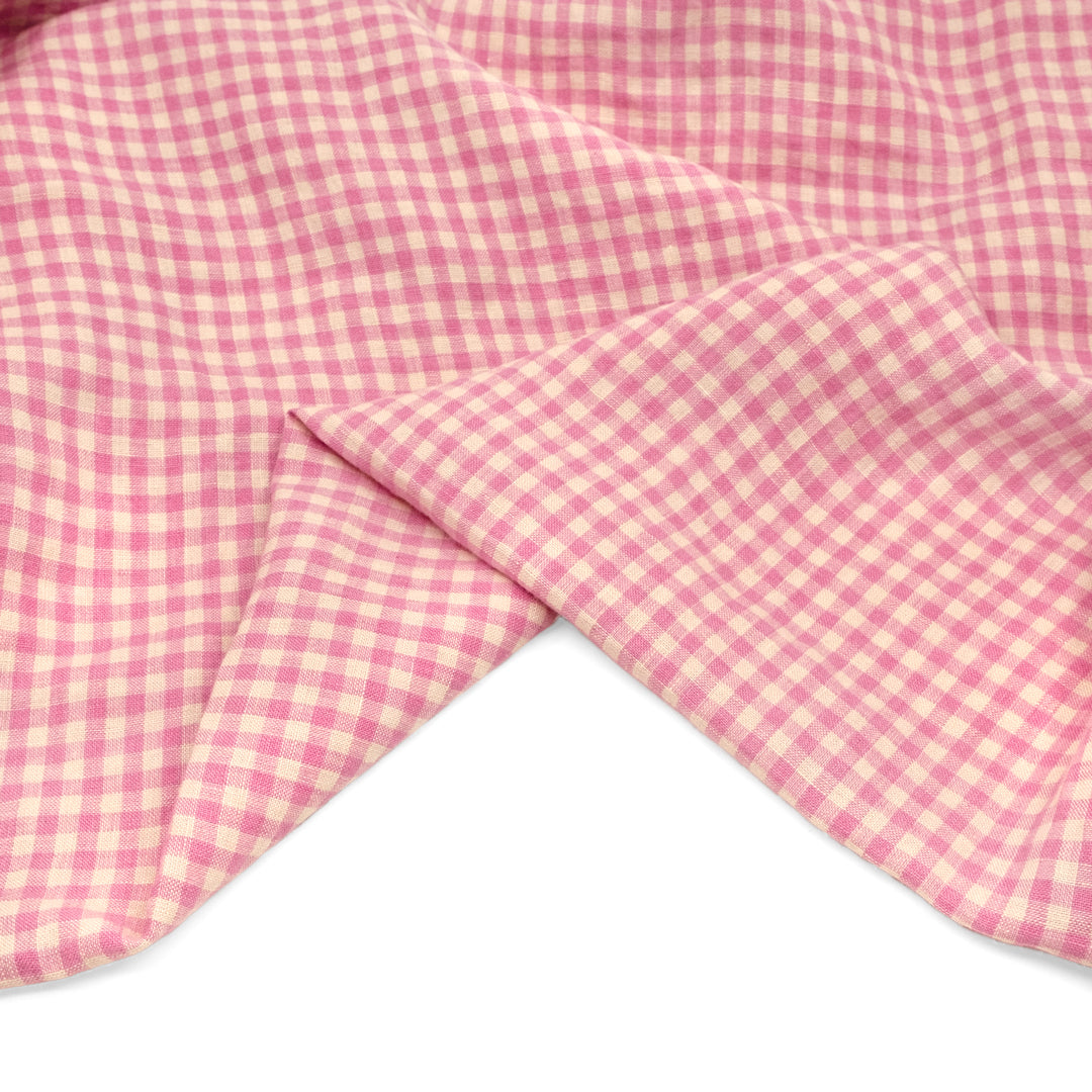 Lightweight Check Soft Washed Linen - Dragonfruit