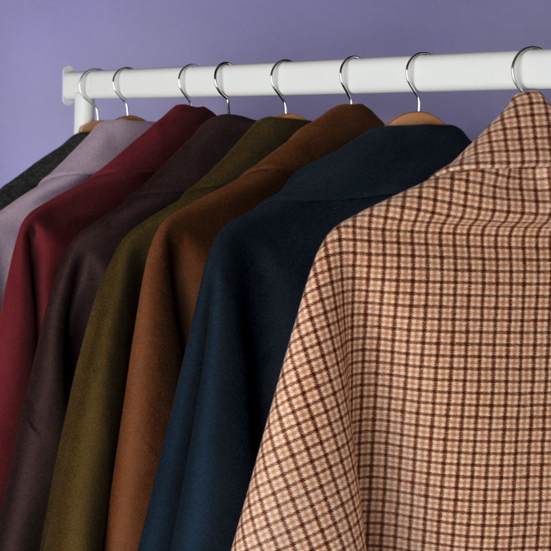 Our 2025 collections boasts a gorgeous array of luxe double faced wool blend coatings to work with and a variety of coordinating linings.