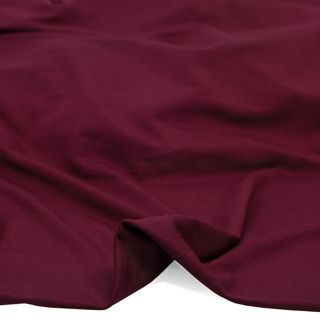 Naturally soft, this bamboo jersey is one of our most popular knit fabrics for good reason. With a smooth buttery hand and subtle lustre, this fabric is comfy against the skin and a joy to wear. This opaque jersey has a fluid drape and great recovery that makes it well suited to everything from drapey tanks to ultra-soft undies.