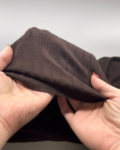 Comfort has never looked so good! This wide rib knit is made from an easy-wearing blend of viscose, poly, and spandex, making it a staple for any wardrobe. Midweight with a fluid drape and thin hand, it has a comfortable 4-way stretch and good recovery. Perfect for all seasons, this dreamy knit is ideal for whipping up into loungewear pants, layering turtlenecks, or casual tees & t-shirt dresses.The ribs are 8mm wide.