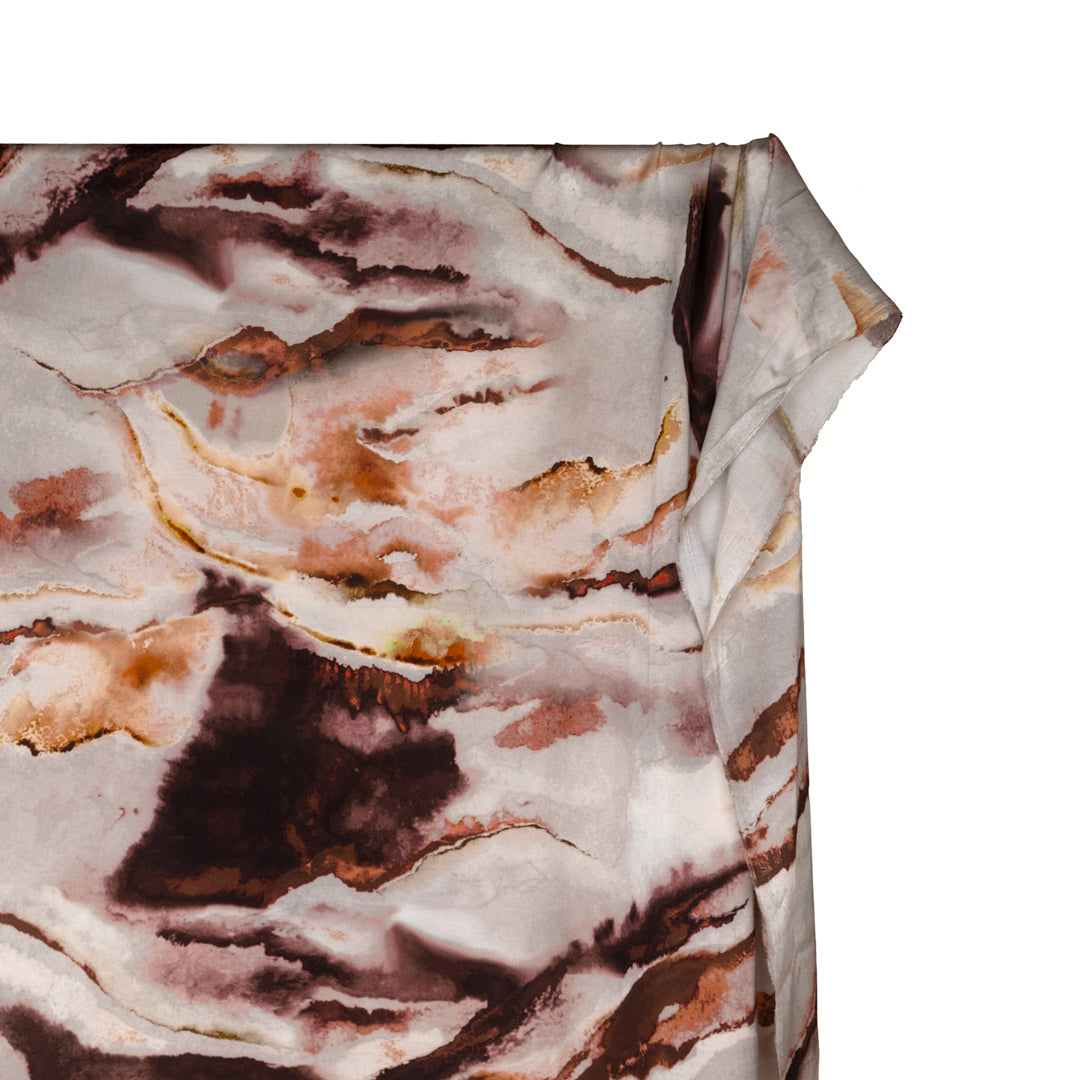Lightweight with a soft, silky hand, this slinky viscose satin is just the thing to add a touch of luxury to your wardrobe. Printed with an earthy design, it boasts a beautiful fluid drape and luxurious sheen that makes it the perfect match for your favorite bias cut tops, skirts, and dresses.