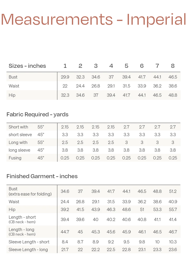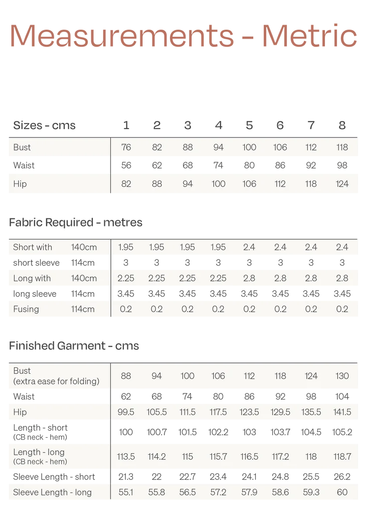 Sizes: 1 - 8 (NZ & UK Size 6 - 20)