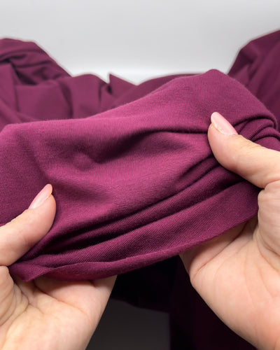 Dive into comfort with this beautifully soft bamboo cotton blend jersey! The newest addition to our core collection, this comfortable knit is lightweight thanks to its cotton content, with a bit of drape (but not too much!) and added softness from the bamboo. This versatile knit features an ultra-comfy hand and ample 4-way stretch with great recovery that’s perfect for classic tees & tanks, dresses, and loungewear.
