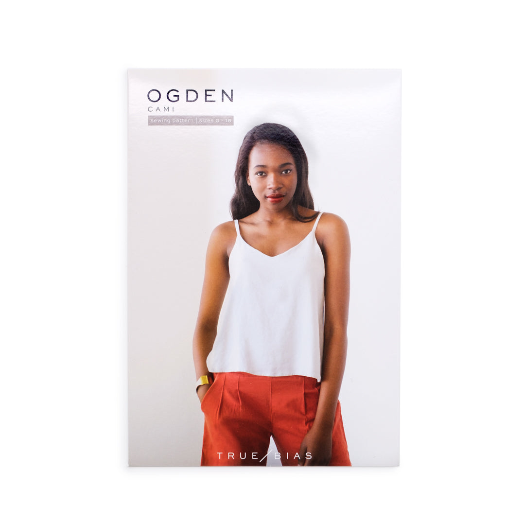 The Ogden Cami is a simple blouse that can either be worn on its own or as a layering piece under blazers and cardigans. It has a soft V neck at both center front and center back necklines, and delicate spaghetti straps. The neckline and armholes are finished with a partial lining for a beautiful, high-end finish.
